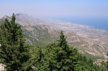 キプロス島北岸の良好ギルネ(キレニア)を見下ろす標高940メートルの山頂に、ビサンティン帝国の12世紀の城跡がある。その足元に遥か彼方まで海岸線を見渡す素晴らしい展望は、まさに敵を見張る望楼として最高であったに違いない。