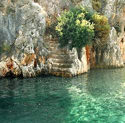 トルコには、調査の手の入っていない紀元前の遺跡が大変多いが、ここもまだ殆ど手つかずのままだ。伝承によれば、かつて本土と繋がっていたとのことであるが、海底まで少なくとも100メートルの深さがあることを考えると、俄かには信じがたい。 --> http://www.lycianturkey.com/lycian_sites/kekova_simena.htm(非公式サイト)