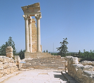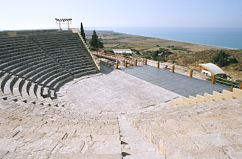 途中、広大な競技場などを見学しながら、アポロンの聖域(The Sanctuary of Apollo Hylates)に向かおう。この遺跡のアポロン神には、Hylates(ギリシア語でylatis−森)という修飾語がつくことからも分かるように、海を感じるクリオンと対照的に、こちらは高原の緑の中にある。 城壁に囲まれた聖域内の遺跡は規模こそ小さいが、修復された神殿の柱の存在感は圧倒的で、聖所の威厳が感じられる。 クリオン遺跡は、キプロス第二の都市レメソス(リマソル)の東約10kmにある。この一帯は英国領アクロティリ・デケリアに含まれるので、あちこちに建つ英国空軍の巨大なアンテナを除けば、開発が一切行われておらず、素晴らしい自然環境が保たれている。 なお国境管理等はなく、基地関係を除いた一切の活動は行われていないので、キプロス国内のつもりで訪問することができる。 --> http://www.limassolmunicipal.com.cy/kourion/(地元レメソス市サイト中のページ)