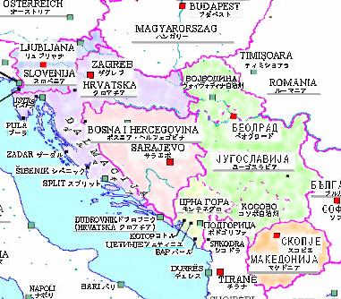 ティトー統治下のユーゴスラビア共和国は、パルチザンの英雄ティトーへの個人的信頼、政府の国内一体化政策、冷戦下における国際関係の緊張などの中、表面的には安定を保つが、小規模な内乱や自治権拡大運動は頻発した。 1980年、英雄ティトーが死去すると、国内は動揺し始めた。おりから国内の経済は低迷し、それが民族主義の台頭に火をつけた。セルビア内のコソヴォ自治州はアルバニア人が人口の9割を占め、1968年、1981年の反乱を始め小規模の動乱が散発していたが、1990年7月ついに独立を宣言した(1999年2月現在、内戦状態となっている)。 一方連邦の北端に位置するスロベニアは元来ドイツやイタリアとの結びつきが強く、経済的な発展、西欧的な気質などの点でセルビアと大いに異なっており、些細な事件を発端に1987年頃から反セルビア意識が強まりつつあった。 1990年、東西ドイツが再統一され東欧の民主化が進むなか、ユーゴに初めて導入された複数政党制選挙が実施されると、セルビア人が多数を占めるセルビアとモンテネグロを除いてはいずれも民族主義政党が勝利を納めた。 こうなると連邦崩壊は時間の問題であった。国家連合形態のあり方をめぐり連邦内各国の対立は収拾がつかず、1991年6月スロベニアが独立を宣言し、クロアチアもやや曖昧ながら事実上の独立を宣言した。このスロベニアとクロアチアの宣言の特徴は、セルビア人支配からの脱却もさることながら、先進地域である自国を後進地域である他の地域から切り離したいという、経済的な切り捨て思考に基づいた部分が少なからずあったということである。 |