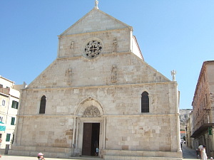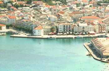 町の構造は、城壁に囲まれ、内部が方形の街区に区切られたクロアチアでは珍しい構造を取っているが、これはヴェネチア領時代に建設された新市街であるからだ。14-15世紀ごろ、この一帯はヴェネチアとハンガリーとの間で一進一退の攻防が続いた。それに巻き込まれた旧市街は焼け落ちて放棄され、町全体が今の場所に引っ越したのである。 パグには二つの名産品がある。一つは、バラの花をデザインした繊細で美しい伝統の編み方によるレースで、通りを歩いていると、作ったレースを表に出した椅子に乗せて展示販売している光景を良く見かける。(写真下左) もう一つの名産は、パグチーズだ。クロアチアを代表するチーズの一つで、潮風を受けたパグ島の牧草で育った羊の乳から、豊かな味わいが生み出される。パグ島に限らずこの地域のレストランなら出されることが多いので、ぜひ試してみたい。