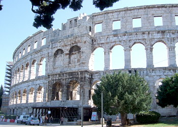 ーマ帝国のイストラ半島進出の拠点であったプーラには、当時を偲ばせる多くの遺跡が有り、世界遺産に指定されている。シンボルでもある円形競技場[写真上]は当時の土台の上に再建されたものだが、ヘラクレス門、邸宅のモザイクなど、現存するものもある。1世紀のアウグストゥス寺院[写真下左]があるフォーラムに、当時の町の構造がそのまま残っている。 6世紀の初期キリスト教時代の貴重なスヴェティ・マリヤ・フォルモザ教会[写真下右も見逃すことが出来ない。 現在のプーラは、クロアチア有数の都市として、経済や産業の中心地のひとつとなっている。英国やドイツとの直行便、イタリアからの航路など、交通の拠点でもあり、ここをベースに旅程を組むのも便利がいい。