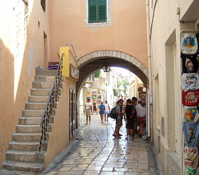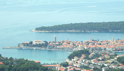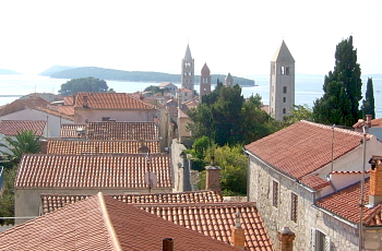 本の高さを競い合う個性的な教会の鐘楼が、ラブのシンボルだ。聖エウフェミヤ湾に長く伸びた岬の上に作られた狭い町の4本の塔は、見る方向によりさまざまにバランスを変えながら、見るものに新しい光景を与える。