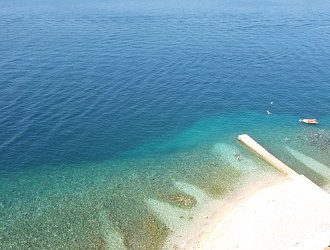 ブ島の大きな魅力の一つは、自然の美しさだ。驚いたのは、このラブの町と隣接して、港の反対側の松林の下の白砂と青い海の素晴らしいビーチになっていることだ。