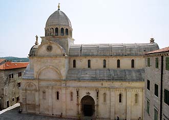 石畳のしっとりとした旧市街には、思わず足を止めたくなる歴史的建造物や史跡が多いが、なんと言っても白く輝くスヴェティ・ヤコヴ(Sv.Jakov)大聖堂が圧巻だ。世界遺産に指定された聖堂は、15世紀のものだ半円を重ねた独特の正面と力強い側面が特徴で、その様式はヴェネツィア本国、サンミケーレ島ののサン・ミケーレ・イニゾーラ教会(S.Michele in isola)にも影響を及ぼしている。