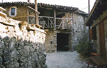 そんな新しい村に埋もれるように、300メートルほどの長さの歴史保存地区の旧街道が残されている。人がやっとすれ違うほどの石畳の道の両側は、二階のテラスが張り出した木の梁を持つ土壁とレンガの家屋が軒を連ねる。道端に座った老人がリンゴの皮をむいている。特産の果物のシロップ漬けを作っているのだろう。街道の一番下の大岩は、村名の由来となった「悪い石」(カコペトリア)だ。