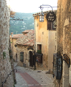 要塞のような村の内部へは車は進入できない。時代掛かった石造りの町並みは、本来の村の機能は失ったが、そのまま保存されてホテル、個人のアパート、商店、アトリエなどになっている。それらを縫って走る路地にツーリストが溢れる光景は、特にツアーバスが到着した時には、まるでテーマパークのようですらある。