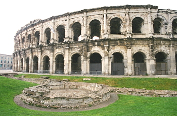 多くのモニュメントの中で、市街地で圧倒的存在感を持つのが円形闘技場だ。24000人を収容する大きさもさることながら、保存状態が大変良い。帝国崩壊後も、要塞、収容所など、目的を換えながらも使われつづけてきたからである。19世紀から闘牛場となり、今もって多くの観客を集めている。