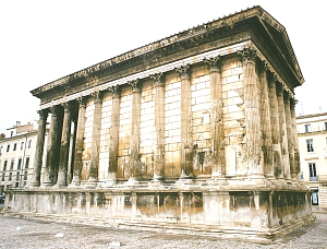 帝国の有力な軍人アグリッパと皇帝の娘との間に生まれ、若くして亡くなったカイウスとルキウスのために立てられたと言われる、長辺26mのやや小ぶりな神殿だ。 当時フォーラム(街の中心広場)に立てられた神殿は、21世紀においても街のど真ん中にあたり、街の構造がなんら変わっていないことが窺える。