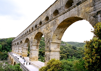 内へ水を供給していたローマ時代の水道は、ユゼス(Uzès)市付近を水源とする全長約50kmにおよぶ壮大なものだ。