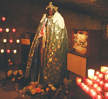 その暗い堂内の地下の闇の中で、綺麗に着飾ったサラの像が、灯りに照らされている[写真2]。