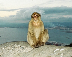 第一の見所は、なんといってもザ・ロックと呼ばれる標高423メートルの尖った岩山だ。ロープウェイで山頂駅まで上れば、食事もできるレストハウスと展望台がある。北から西にかけてはスペインの海岸線、東は目も眩む崖の下にきれいな海岸が見え、そして南は海峡を隔ててスペイン領セウタとモロッコの山々が間近に見える。