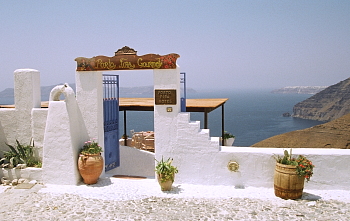 シー・ビュー(海の見える)の部屋を希望するなら、ホテル選びは念入りに行いたい。この町の崖沿いの絶景地帯は、個人の別荘か、営業用のレストランなどで占められており、ホテルは極めて少ない。シーズン中は、よほど前もって長期宿泊の予約を入れるのでなければ、取れないだろう。 フィラと同じ地形にある隣町のフィロステファニ(Firostefáni/Φηροστεφάνι)、さらにその隣のイメロヴィグリ(Imerovígli/Ημεροβίγλι)あたりであれば、若干の可能性があるかもしれない。その場合も、法外な部屋代を覚悟しておいたほうが良いだろう。