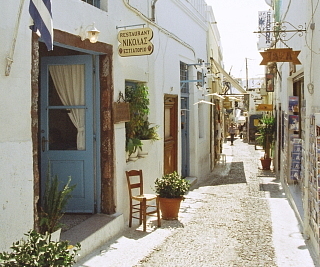 に一本入ると、土産物、ギロ(ギリシア風ファーストフード)、食堂などの店が並び、バックパッカーや地元民の生活の場になるのが面白い。