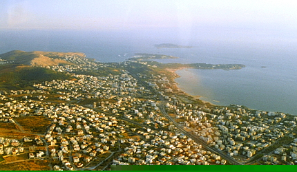 工的な首都アテネから南に約10km離れると、そこはもうエーゲ海に面したビーチリゾートだ。 海の色は明るいコバルトブルーに変わり、港には富豪たちのヨットが並んでいる。海岸には近代的なリゾートホテルが連なるが、アテネっ子たちの手軽なビーチとしても人気がある。 すぐ南のヴーラ(Voúla/Βούλα)、入江と松林の美しいヴリャグメニ(Vouliagméni/Βουλιαγμένη)[写真下・空撮]と共にリゾートエリアを形成している。