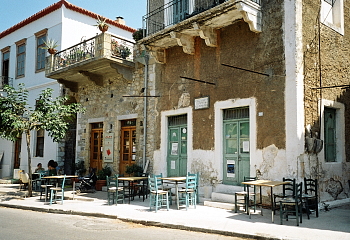 カルダミリはほんの小さな漁村で、村を一直線を貫くメインストリートは幹線道路でもあるのだが交通は多くなく、のどかなギリシアの田舎の町並みが続いている。[写真中]