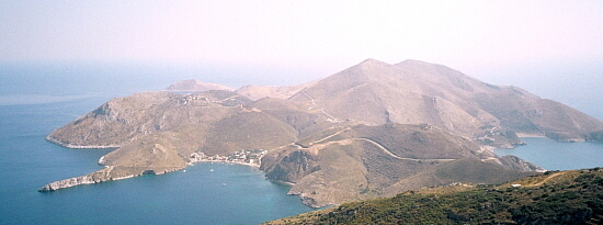 ナロ岬へと落ち込む、ペロポネソス半島の最南端の雄大な眺め。ポストカードなどでよく見るこの風景を眺めるには、ポルト・カイヨ湾の北側の山頂にある小村、コロゴニアニカを目指すといい。 本当にここに人が住んでいるのかと思うほどの辺境の地の山頂部に、人口わずか20人の村がある。道路が整備されているので、車と地図さえあれば汗をかかずに訪れることができる。村のすぐ南の小さな丘に登ると、ポルト・カイヨ湾越しにテナロ岬へと続く息を呑むような光景が広がる[写真下]。