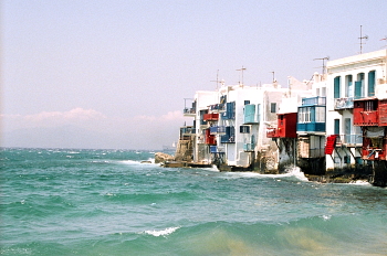 防波堤とカト・ミリの風車の丘との間の一角は、小ヴェネチアと呼ばれている。中世のミコノス島は、ヴェネチア共和国に属した時期が長かったが、ヴェネチア人たちが故郷を思い出してそう呼んだのだろうか、水際に直接入口を持つ家々が並んでいる様は、白く塗られた家であるが確かにヴェネチアを髣髴とさせる。