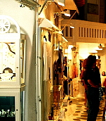 路地の中でも、商店が多い賑やかなところでは、レストラン、カフェ、ファッション、アクセサリー、みやげ物などの店が連なり、リゾート客が肩を触れ合うように行き来している。