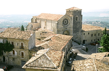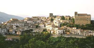 イタリア半島が細くなるカラブリア北部のポリーノ山地にある、長細い丘の上に延びる町がアルトモンテだ。山頂部のサンタ・マリア・デッラ・コンソラツィオーネ教会が、要塞のように町と周囲の谷とを見下ろしている。【写真上】。丘の斜面には細い曲がりくねった路地や階段の両脇には、古い中世の家並みが続いている。教会近くの塔に上ると、緑の山々に囲まれた町の景色が素晴らしい。この町からは、イオニア海、ティレニア海の両方を眺めることが出来る。