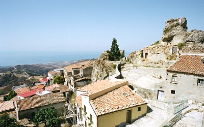 延々と続くボーヴァへの長いアプローチ。カラブリア州でも一番寂しいアスプロモンテ山地の南側の海岸。小さなボーヴァ・マリーナから山に向かう道を取る。海岸沿いですら小さい町しかないのだが、さらに曲がりくねった細い車道を山間部へと進んでいく。家一つない、潅木や草に覆われた乾いた山肌を、ゆっくり運転して十数分で、見上げる山の山頂付近に密集した家々が姿をあらわす。あまりの唐突さに目を疑ってしまうが、これがまぎれもなくボーヴァだ。まさに隠れ里そのものだ。