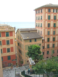 ジェノヴァ湾に突き出たポルトフィーノ半島の付け根のパラディーソ湾にある町は天然の良港で、かつてはジェノヴァの帆船の基地として栄えた。山の急な斜面が迫る海岸沿いの1kmに渡って、6〜7階建ての鮮やかに塗り分けられた中世の家々が海に向って立ち並ぶ様は壮観だ。