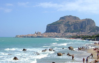 いかにも南イタリアらしい石畳のこじんまりとした古い街並みと、まるで天然の塔であるかのように聳え立つ岩山。海岸一帯の穏やかなビーチ。チェファルーは、まさにリゾートとしての条件を見事に兼ね備えた、シチリアでも有数の保養地だ。夏のシーズン中は、予約なしで宿を探すのは一苦労ほどの人気ぶりだ。