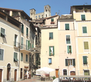谷間のわずかな平地に開けた新市街から、中世の石橋を渡った対岸の急峻な山の斜面に作られているのが、ドルチェアクア旧市街だ。 「甘い水」を表す町の名に興味を引かれるが、起源を辿るとラテン語か、ケルト語の地名が訛って、そんな発音になったらしい。 現在の城は、13世紀に町を手に入れたジェノヴァのドリア家が建設したものだ。戦乱と地震で崩壊し一時は打ち捨てられたが、最近になって観光用に、一部修復されている。