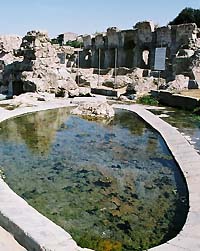 しかし、古い歴史に加えてこの町を有名にしているのは温泉だ。ローマ時代から温泉地として知られており、マーレウ川沿いにまるで日本の大旅館を思わせるような大規模な温泉施設の遺跡があり、驚かされる。およそ2000年の時を経て、屋根は落ち、壁を彩っていたであろう壁画の痕跡は微かになっているものの、一番大きな石作りの浴槽は、温泉旅館の大浴場ほどの大きさで、今でも吐出口から約50℃の湯が勢い良く沸き出ている。脇にある2〜3人が入れそうな小さな浴槽には適温の湯がなみなみと張られている。