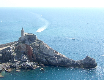 遥か上の城までの道中、眼下のサン・ピエトロ教会とパルマリア島、そして遥かトスカーナやジェノヴァ湾を見渡す壮大なパノラマが堪能できる。 城から岩礁の教会へと下っていこう。右手の小さな入江は中世の軍港だが、その岩を削った桟橋は海を楽しむリゾート客の日光浴の場として占拠されている。そこにあるバイロンの洞窟は、この町が気に入って逗留した詩人バイロン卿に因んだものだ。