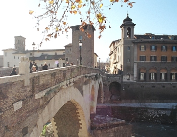 テヴェレ川の向こう側は、トラステヴェレ(テヴェレ川の反対側の意)と呼ばれ、サンタ・マリア・イン・トラステヴェレ教会を中心に入り組んだ路地の活気ある庶民の街で、街歩きが楽しい。