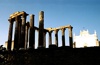 古代ローマのディアナ神殿[写真上]、13世紀のエヴォラ大聖堂[写真下]、アラブの要素が混在するサゥン・ブラシュ聖堂(Capela de São Bras)、中世の水道橋アグア・デ・ラプラタ送水路など、数え上げてもきりがないほどだ。