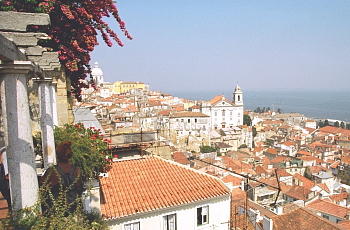 ルファマ(Alfama)は、海のように広く青いテージュ川を眼前にして城の足元に広がる、リシュボアの旧市街で、震災をくぐり抜けた唯一の地区だ。白壁の家々を縫うように走る狭い坂道となった路地に、咲き誇る花や水の青さが彩りを添える。