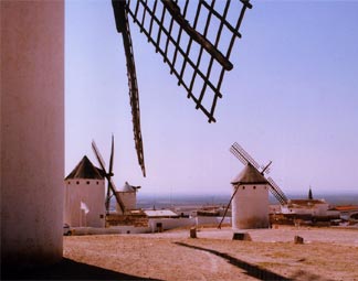 世紀にスペインに風車が伝えられた。当時としては先進的なこの装置はたちまち広がったが、今日その姿をとどめているものはほとんどない。カンポ・デ・クリプターナは教会以外には何もない小さな町だが、町の北側の丘の上に残された実際には使われていない数台の風車が、中世のラマンチャの面影を今に伝えている。