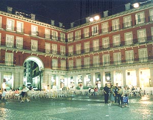 旧市街の中心はマヨール広場(Plaza Mayor)で、ここで何人もの王の即位式が執り行われてきた。西には王宮が、東には道路の0km原標をもつ太陽の門(プエルタ・デル・ソル)があり、スペインの心臓部となっている。この周囲にはマドリッドの歴史ある教会や庶民的なパール、タベルナ、商店などが立ち並ぶスペインらしい情景を作り出している。日本語でマドリードと呼ばれる町の名は現地のカスティーリャ語(スペイン語カスティーリャ方言)ではマドリッ(ズ)と呼ばれている。