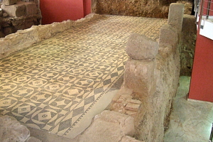 遺跡は現代の町の下層のどこにでもある。例えば市街地のあるオフィス用の建物は、工事の際に発掘されたと思われる地下のローマ時代のモザイクが公開されている。いわば、地下1階がローマ時代のモザイクのある空間なのだ。