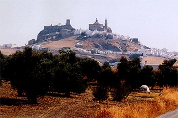 ンダルシア山中、時おり見かけるオリープ畑の他には何もない小高い丘の上にオルベーラはある。人口8000人あまりのひっそりとした白い町は、起源をローマ時代のイリッパ(Ilippa)に遡る。円錐状の地形の頂上に12世紀のアラブの古城と聖母教会(Iglesia Parroquial de Nuestra Senora de la Encarnacion)とがあり、放射状に一直線で下るスキーゲレンデのような2本の急坂に沿って町並みが続く。砦の上から
