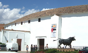 橋を挟んで新旧市街が対峙しており、新市街のシンボルは闘牛場だ[写真左]。構造上、野球の球場と似た作りをしており、町の規模の割りに立派であることが、いかに闘牛が根付いているかを示している。