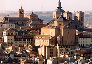 町の3方はタホ川に面しており、北側には城壁がめぐらされている。町の中心にある大聖堂はフェルナンド3世が1227年に着工を開始させたものであり、当時の首都にふさわしい大規模なものだ。その西側にあるアルカサールは王の居城であったが、1936年のスペイン内戦時に人民戦線の猛攻の前に廃墟と化した。現存する建物ものはその後に再建されたものだ。これらを囲んだ直系約1キロの円内に、迷宮のような中世の曲がりくねった小道が広がっている。車で町を出て対岸のパラドールまで行くとタホ川に浮かび上がる褐色の中世の町が一望できる。町そのものが世界遺産に指定されている。