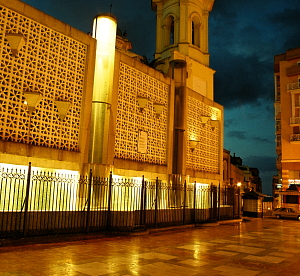 旧市街の中ほどにある、ロス・レイエス広場(Plaza de los Reyes)にある、サン・フランシスコ教会のアラブ風の装飾を取り入れた壁面は、昼間は白と青のコントラストが、夜には水と光のハーモニーが美しい。