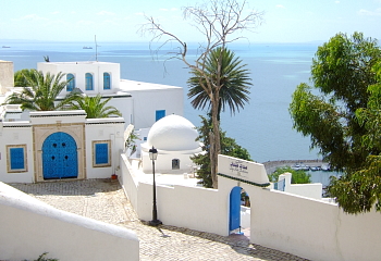 市街地は、鮮やかな白と青に統一してメンテナンスされており、松林の向こうにカルタゴやチュニス市街、遥かボン岬まで望むそのロケーションは、地中海でも指折りのものだ。