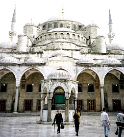 見所は旧市街の狭い地域に集中している。ガラタ塔からガラタ橋を渡って旧市街へと渡っていくと、橋の袂は車やフェリー、鉄道駅、物売りの屋台、市場などでごった返している。名物のムール貝のドルマやイワシのサンドなどの屋台料理などどれも美味しそうだ。丘の中腹から上に掛けて、Sultanahmet Camii[スルタン・アフメット・モスク(通称ブルーモスク)]、シュレイマニエ・モスクを始め多くの素晴らしいモスクが立ち並ぶ。中でも群を抜くのが、オスマン帝国絶頂期の17世紀に建てられたスルタン・アフメット・モスクだ。メッカにあるイスラムの総本山と同じ6本のミナレットを持つ、重厚でありながら美しいシルエットを持っている。内部は祈りの場であるので、意外と簡素な作りで、絨毯が敷き詰められた穏やかな空間だ。