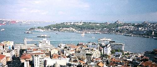 イスタンブールの中心地は、3つの部分に分かれている。Boğaziçi[ボウァズィチ(ボスフォラス)海峡]によりアジア側とヨーロッパ側に、さらにヨーロッパはHaliç[ハリチ(金角)湾]により新市街、旧市街の2つに分かれている。新市街と旧市街はいくつもの橋で結ばれているが、その突端近くのGalata Kulesi[ガラタ塔]に登れば、これら街の様子が一目瞭然だ。宮殿やモスクの緑に覆われた旧市街、そして活気溢れる新市街やアジア側、湾内を航行する数多くのフェリーや小船、その喧騒が肌で感じられる。