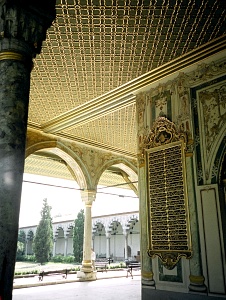 さらにその隣の海を望む丘の上には、ドイツ、イギリス、フランスなどですら進んで貢物を納めていたほどの強国、オスマン・トルコ帝国のTopkapı Sarayı[トプカプ宮殿]が、その姿を留めている。ヨーロッパの城とは構造が全く違い、広大な平屋の集合体であり、皇居にも通ずる東洋的な作りだ。皇帝の門を抜け、続いて中門をくぐると宮殿の中心部だ。厨房跡には、日本製も含むおびただしい陶磁器などの寄進品が展示されている。その奥の幸福の門から先は、スルタン個人の領域だ。左手のハレムには、スルタンやその家族、男女奴隷たちが住んでいた。宝物室にはおびただしい数の宝石類が展示されており、有り難味を感じなくなるほどである。宮殿の最深部は海に面したテラスになっており、湾内を航行する船や大陸側の市街地の景観を眺めながら、一息つきたい。