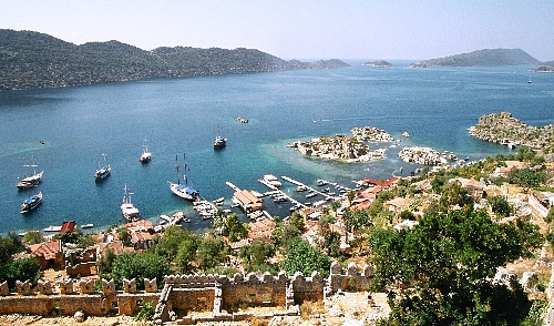 多 島海の、カシュからカレ(デムレ)にかけてのトルコ南西部のエーゲ海。島影の小さな岬の丘の上に、本当に小さな村、カレがある。15キロほど東にあるサンタクロースの墓所として有名なカレと同名であるが、それに対してこの村はカレキョイ(Kaleköy)すなわちカレ村とも呼ばれる。