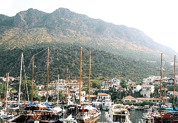 地 中海沿岸のトルコのリゾートと言えば、海はきれいだがどこかプリミティブで誇りっぽいイメージが拭いきれない。そんな中でカシュは、ナチュラルライフを満喫しながらもインターナショナルなレベルに達しているリゾートの一つかも知れない。どの空港からも遠く、幅の狭い国道を通ってしか行くことが出来ない。前は海、後ろは山に阻まれた隠れ家リゾートだ。