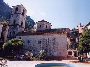 面を登っていくのが町からもはっきりと見える。この道は中世の謎めいた山岳国家ツルナゴーラ(モンテネグロ)主教国の首都ツェティニエへと続いている。この国は強大なトルコ帝国と数世紀にわたり戦いつづけた勇猛な宗教国家で、ヴェネチア支配下のコトルからの峻険な馬車道を、唯一の海への出口としていた。そのためヴェネチア人の話すヴェネト語の「モンテネグロ」が、国名として知れ渡った。宗教も異なる世俗国家のヴェネチアとは必ずしも仲がよかったわけではないが、強大なトルコ帝国に対抗する必要に迫られ共同戦線を組んでいたのである。このつづら折の道をほんの数分登っただけでも、十分それに値する眺望が得られる。このカッタロの梯子を唯一の路として外界と繋がっていた遥か彼方の山上都市ツェティニエを、今でもモンテネグロ人は心の故郷として慕っている。