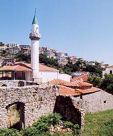 市街への登り口は、新市街の一番奥、タクシープールの近くにある。この先をまっすぐ進めば小さなビーチに出る。夏ともなればパラソルが所狭しと立ち並び、足の踏み場もない大混雑となる。ウルチンは山岳地帯の多いモンテネグロ人にとっての一番のビーチリゾートなのだ。モンテネグロで現存するものとしては唯一完全なハマム残されているパシャ・モスク(Pasina dzamija)脇の坂を上がり、何層ものぶ厚い城壁をカーブしながら抜ける厳重な北門のゲートをくぐると旧市街だ。