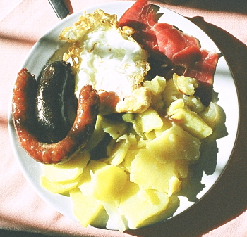 モルシージャとは豚などの血を野菜や香辛料と共につめたソーセージで、スペインでは一般的な食材で、大雑把に言えばレバーを食べるような感覚だ。