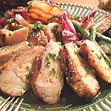 | 仔羊腿肉のローストとクスクス | イベリコ豚骨付き背肉の炭火焼 |